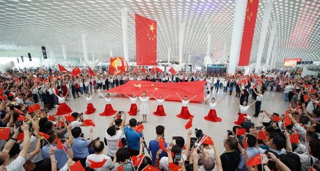 9月25日,在深南大道和濱海大道等城市主干道上,紅旗招展,節(jié)日氣氛漸濃。