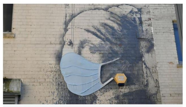據(jù)英國(guó)天空新聞網(wǎng)23日?qǐng)?bào)道,英國(guó)涂鴉藝術(shù)家班克西2014年曾在家鄉(xiāng)布理斯托爾一幢建筑外墻上,模仿17世紀(jì)名畫《戴珍珠耳環(huán)的少女》創(chuàng)作了涂鴉畫《穿耳膜的少女》。在新冠疫情背景下,少女現(xiàn)在又被“戴”上了藍(lán)色的醫(yī)用外科口罩。