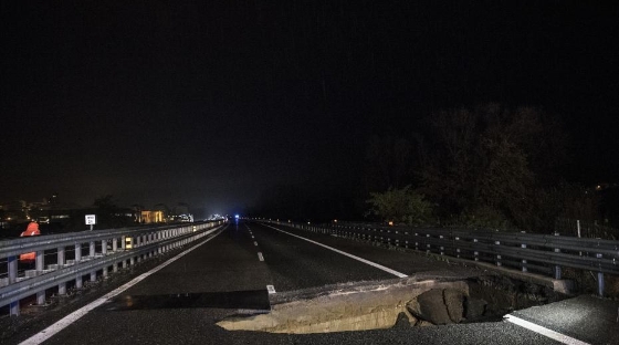 暴雨過后 意大利高速公路出現(xiàn)“大坑”