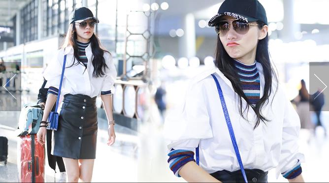 10月31日,上海,奚夢瑤現(xiàn)身機場, 她穿帥氣牛仔裝露細腰長腿,身材好到爆。