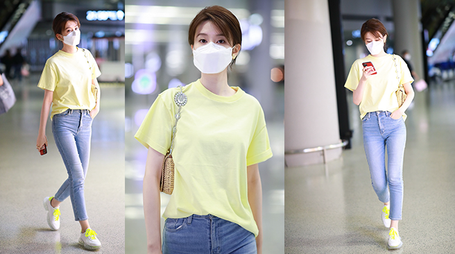 一秒入夏?喬欣私服穿搭堪稱“少女模板“ 黃色短T簡約清新顯元?dú)饣盍?/h3>