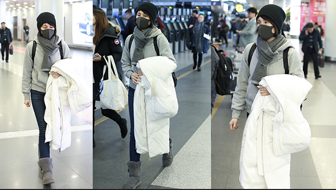 2019年1月5日,北京,袁泉現(xiàn)身機(jī)場。