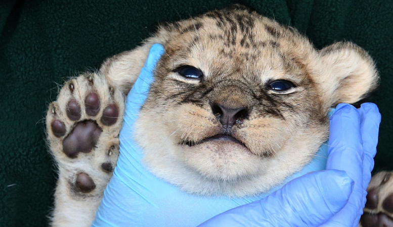 萌吐奶!動物體檢現(xiàn)場爆笑可愛 獅子被提起來稱重