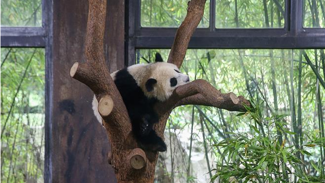當日,來自四川的大熊貓兄弟“和風”與“星光”飛抵上海,正式開始了在上海動物園為期三年的生活。