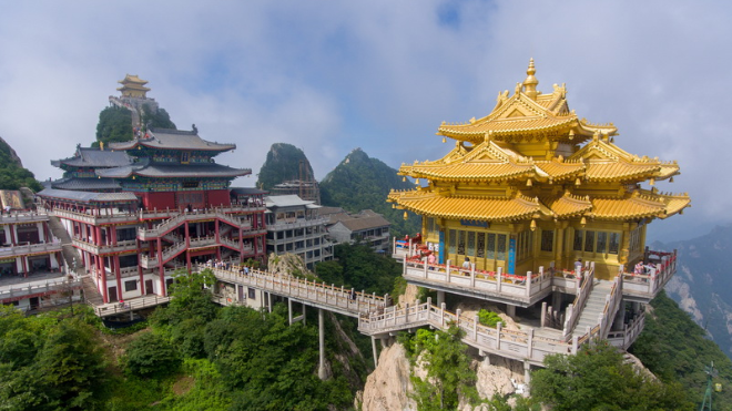 宛如動漫場景!河南2000米山頂矗立3座金殿,巧奪天工似人間仙境