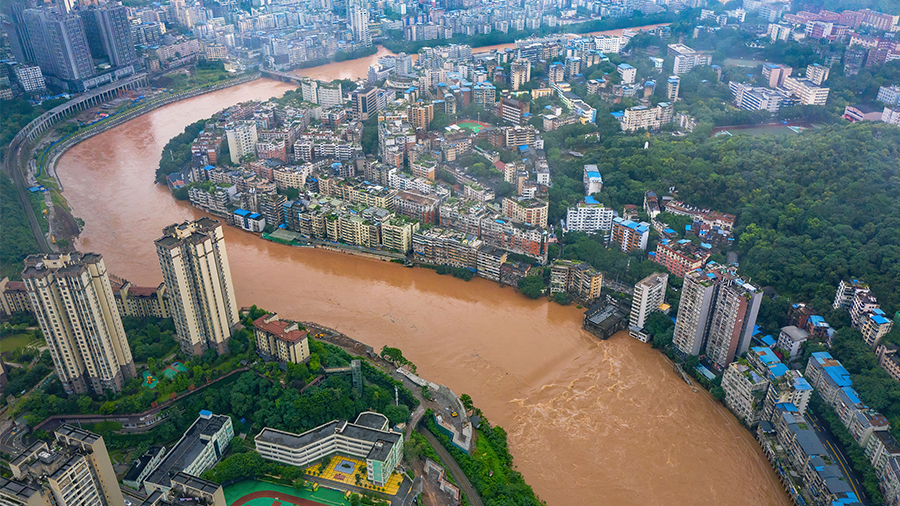 2020年7月1日,重慶市綦江區(qū)綦江河水位上漲。