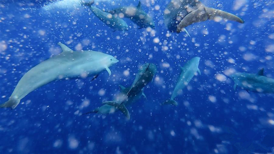 7月20日,我國科研人員在南海某海域目擊并記錄到短肢領(lǐng)航鯨群體與弗氏海豚群體混游現(xiàn)象。