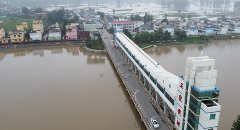 這是7月23日在安徽省阜南縣拍攝的正在關(guān)閘的淮河王家壩閘。