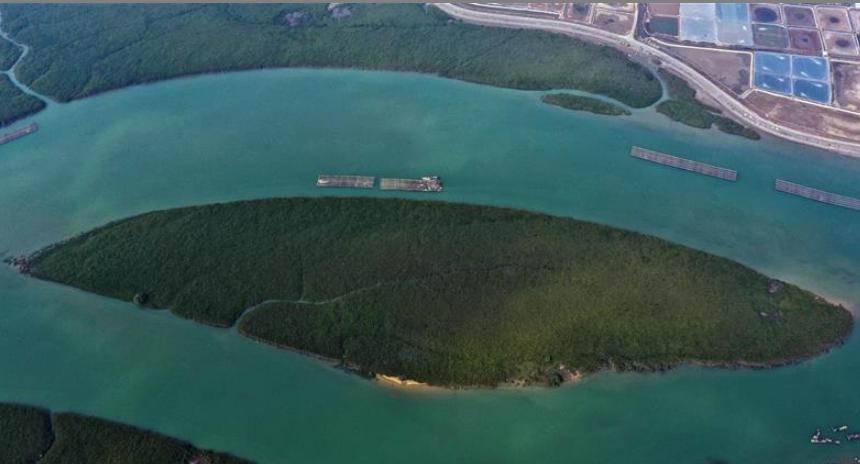12月21日無人機拍攝的廣西合浦縣黨江鎮(zhèn)更螺圍出海口一景。新華社記者 張愛林 攝 12月21日無人機拍攝的廣西合浦縣黨江鎮(zhèn)更螺圍出海口的蝦塘。