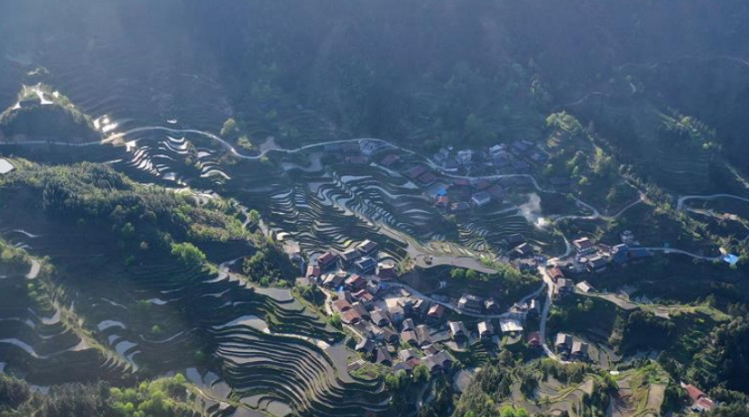 ?隨著氣溫逐漸轉(zhuǎn)暖,廣西融水苗族自治縣桿洞鄉(xiāng)的苗寨梯田景色迷人,美如畫卷。