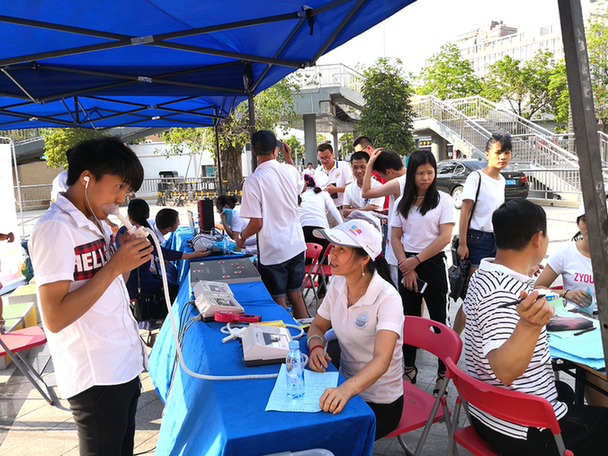 本次《大講堂》活動(dòng)走進(jìn)觀瀾福誠(chéng)街道章閣社區(qū),向社區(qū)居民傳遞健康。白衣天使們不顧炎熱的天氣,用肺活量測(cè)試儀、握力測(cè)試儀、縱跳計(jì)測(cè)試儀等設(shè)備為社區(qū)居民進(jìn)行免費(fèi)體測(cè);深圳獅子會(huì)代繼宏先生現(xiàn)場(chǎng)為大家進(jìn)行了糖尿病預(yù)防知識(shí)的宣教。據(jù)悉,深圳獅子會(huì)致力于關(guān)愛(ài)社區(qū)群眾,傳遞健康環(huán)保知識(shí),為社區(qū)居民舉辦健康大講堂,推動(dòng)健身熱潮,并組織社區(qū)居民進(jìn)行體質(zhì)監(jiān)測(cè)等多種形式的知識(shí)宣講,促進(jìn)社區(qū)和諧建設(shè)。