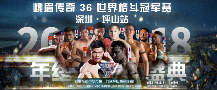2019年1月12日,峨眉傳奇36?年終盛典將在深圳市坪山區(qū)體育館震撼打響,本次比賽由深圳市坪山區(qū)宣傳文化體育事業(yè)發(fā)展專項資金資助。