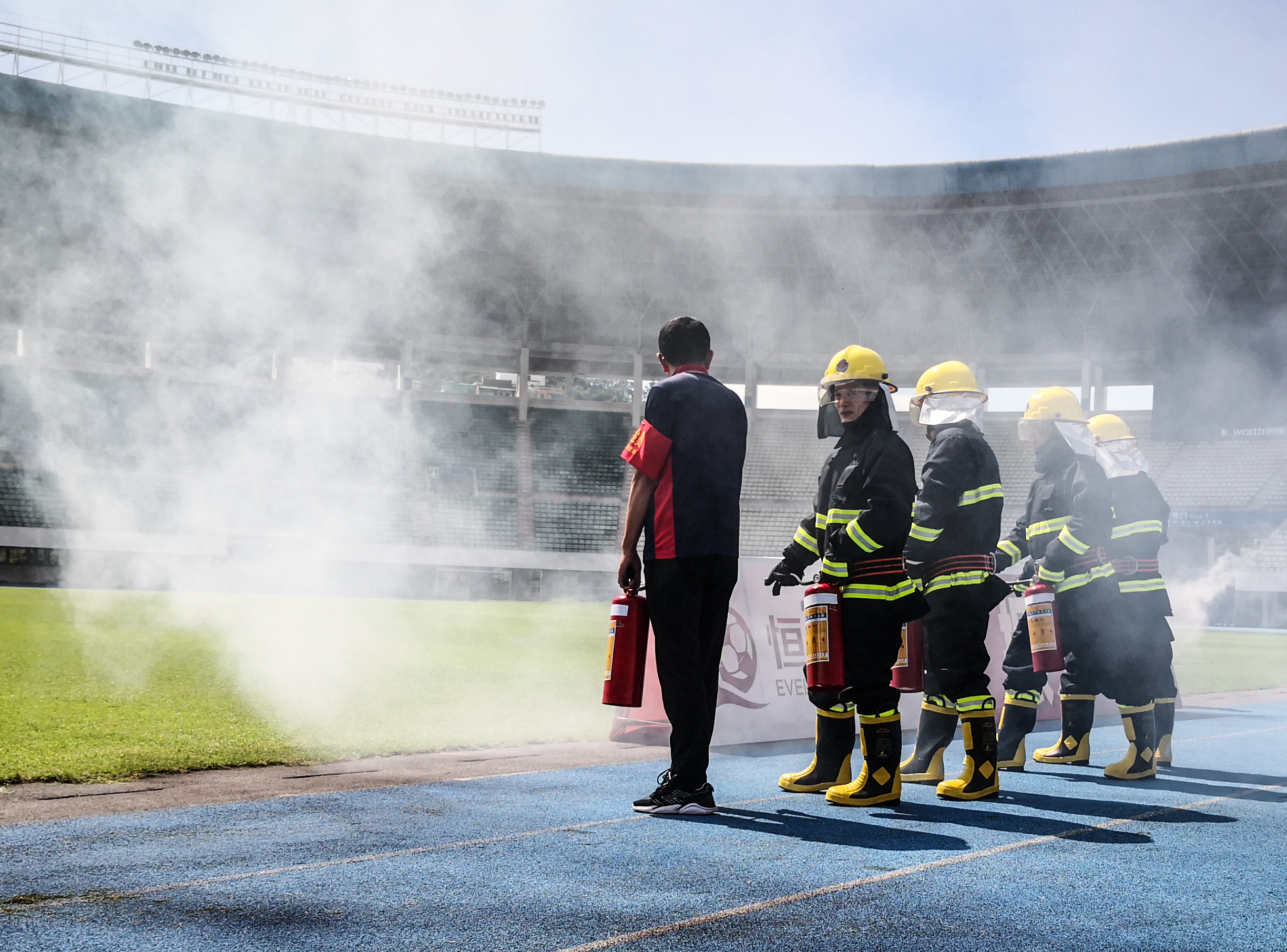 為確保本次演練到位,體育中心特別邀請了羅湖中學初中部的同學參加演練,讓孩子們有一次親身感受火災疏散的經(jīng)歷,了解火災疏散的流程,提升同學們的自救意識和技能。15:00,體育中心體育場,隨著一聲警報聲的響起各工作組在體育場播音系統(tǒng)指揮下第一時間到達指定位置,搶險求援組迅速開展消防滅火,警戒疏散組指揮在場地和看臺的學生快速、有序從就近路線撤離至廣場安全區(qū)域,并尋找是否有遺漏的學生。師生到達廣場安全區(qū)域,各班班主任清點學生人數(shù),確保學生無一人滯留,并層層上報。不到9分鐘時間,600多名羅湖中學初中部師生全部安全撤離。整個演習過程流程清晰,信息傳達準確、及時,疏散指揮反應快速,未發(fā)生學生擁擠、無序的安全隱患,演習效果理想。