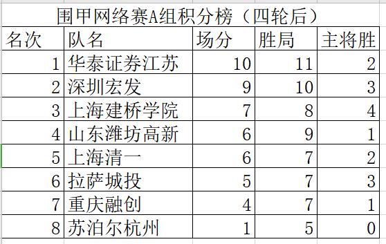 附1:2020年“華為手機杯”中國圍棋男子甲級隊聯(lián)賽網(wǎng)絡(luò)熱身賽AB兩組積分排名表