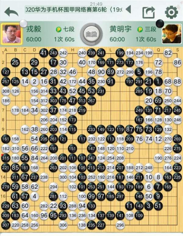 第一臺:黃明宇三段(負)戎毅七段