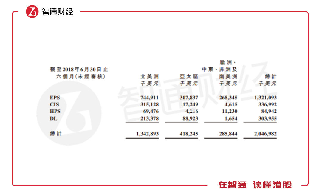 根據(jù)該公司業(yè)務(wù)布局情況,核心的EPS主要布局在北美洲地區(qū),收入7.45億美元,同比增長3%,收入占比36.4%,亞太區(qū)為3.08億美元,同比增長2.7%,北美及亞太區(qū)的EPS收入占比達51.45%。所有產(chǎn)品布局在亞太區(qū)及北美區(qū)收入合計17.61億美元,同比2.2%,收入占比86.03%。
