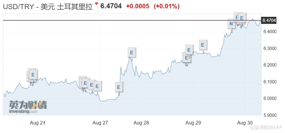 智通財(cái)經(jīng)APP獲悉,8月份土耳其經(jīng)濟(jì)信心指數(shù)從7月份的92.2下降到了83.9,創(chuàng)下自2009年3月份以來的最低水平。數(shù)據(jù)公布后里拉再度承壓,截至發(fā)稿兌美元匯率跌至6.4704,創(chuàng)下自8月15日以來的最低水平。