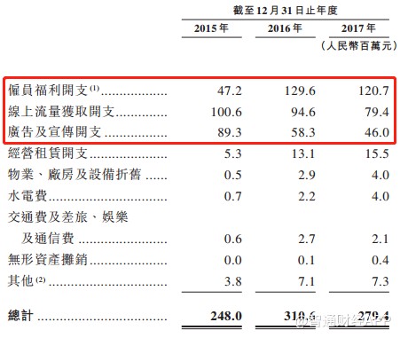 土巴兔的銷售人員開支從2015年的4720萬元大幅增至2016年的1.29億元,并在2017年維持1.2億元左右高位。不過隨著公司規(guī)?;\(yùn)營(yíng)的展開,公司線上買量開支卻從1億元降至7940萬元。