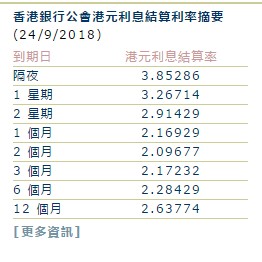 7天港元HIBOR報(bào)3.26714%,上升137.9個(gè)基點(diǎn),為2008年9月以來(lái)最大漲幅。