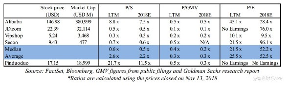 拼多多截至2018年第二季度的12個(gè)月市銷率為21.7倍,是行業(yè)巨頭阿里巴巴(8.8倍)的兩倍有余,也是京東(0.5倍)等更成熟的中國電子商務(wù)企業(yè)的44倍之多。京東的大部分收入來自直銷,而非商家服務(wù),因此這種對(duì)比并不完美,但這只是一個(gè)例證。若按照2018年的市盈率計(jì)算,與阿里巴巴和其他中國電子商務(wù)公司相比,拼多多的股價(jià)仍然顯得非常昂貴(11.5倍)。
