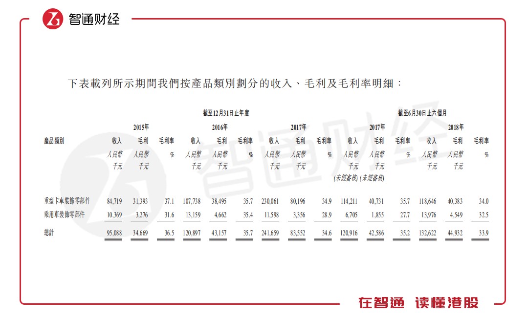 此外,天瑞在招股書中指出,就公司近期財(cái)務(wù)表現(xiàn)而言,公司的收入從截至2017年10月31日止10月的約1.97億元減至截至2018年10月31日止10個月的約1.92億元,略微減少為2.6%。然而,公司截至2018年10月31日止4個月的毛利率為35.8%,略高于上年同期的34.0%。鑒于收入減少并不明顯,以及與2018年上半年相比,公司截至2018年10月31日止4個月實(shí)現(xiàn)穩(wěn)定的毛利率及月平均毛利,因此并無跡象顯示公司的重型卡車裝飾零部件業(yè)務(wù)分部會顯著下跌。