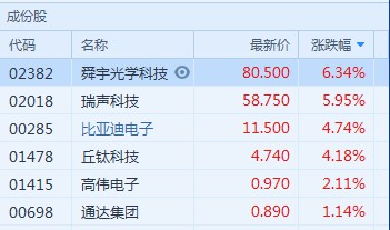 受益于G20結果超預期,早盤手機產業(yè)鏈全線反彈。舜宇光學(02382)漲6.34%,報80.5港元,瑞聲科技(02018)漲5.95%,報58.75港元,比亞迪電子(00285)漲4.74%,報11.5港元。