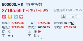 智通財經APP獲悉,周日市場傳來好消息,G20峰會上中美元首在貿易摩擦議題上,中美雙方取得了積極進展,對股市來說是一個極大的利好,短期內市場投資氛圍會得到改善。恒生指數(shù)開盤漲2.56%,報27185.66點。國企指數(shù)漲3.05%,報10945.67點。紅籌指數(shù)漲2.29%,報4437.84點。大市盤前成交76.02億港元。