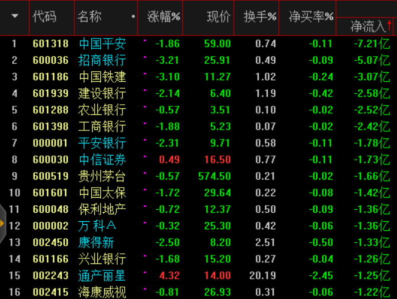 周四資金流向看權(quán)重股流出較大: