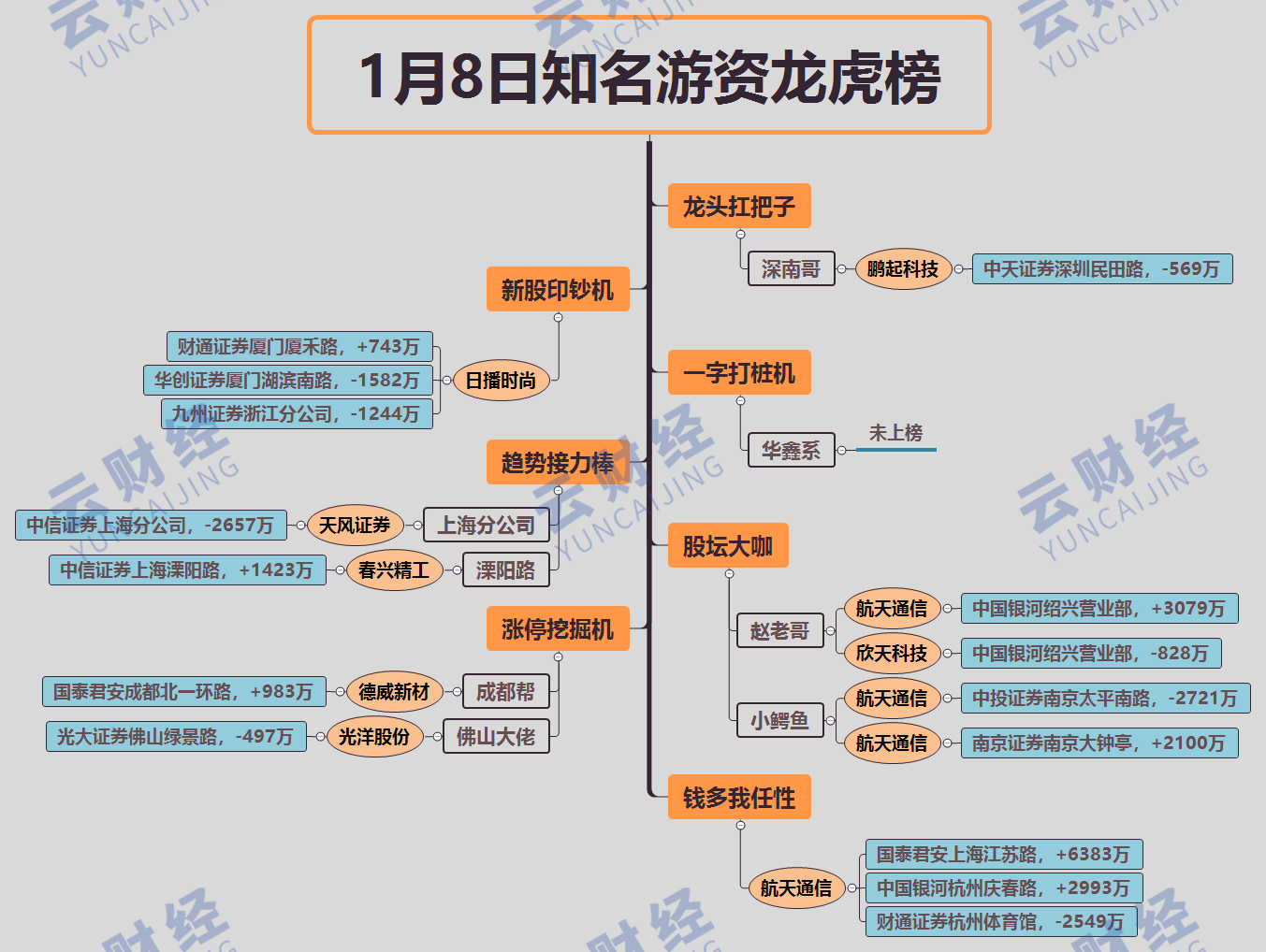 其他游資方面,中信上海分公司割肉賣出天風(fēng)證券(601162)2657萬,成都幫買入德威新材(300325)983萬,佛山幫賣出光洋股份(002708)497萬,深南哥賣出鵬起科技(600614)569萬。