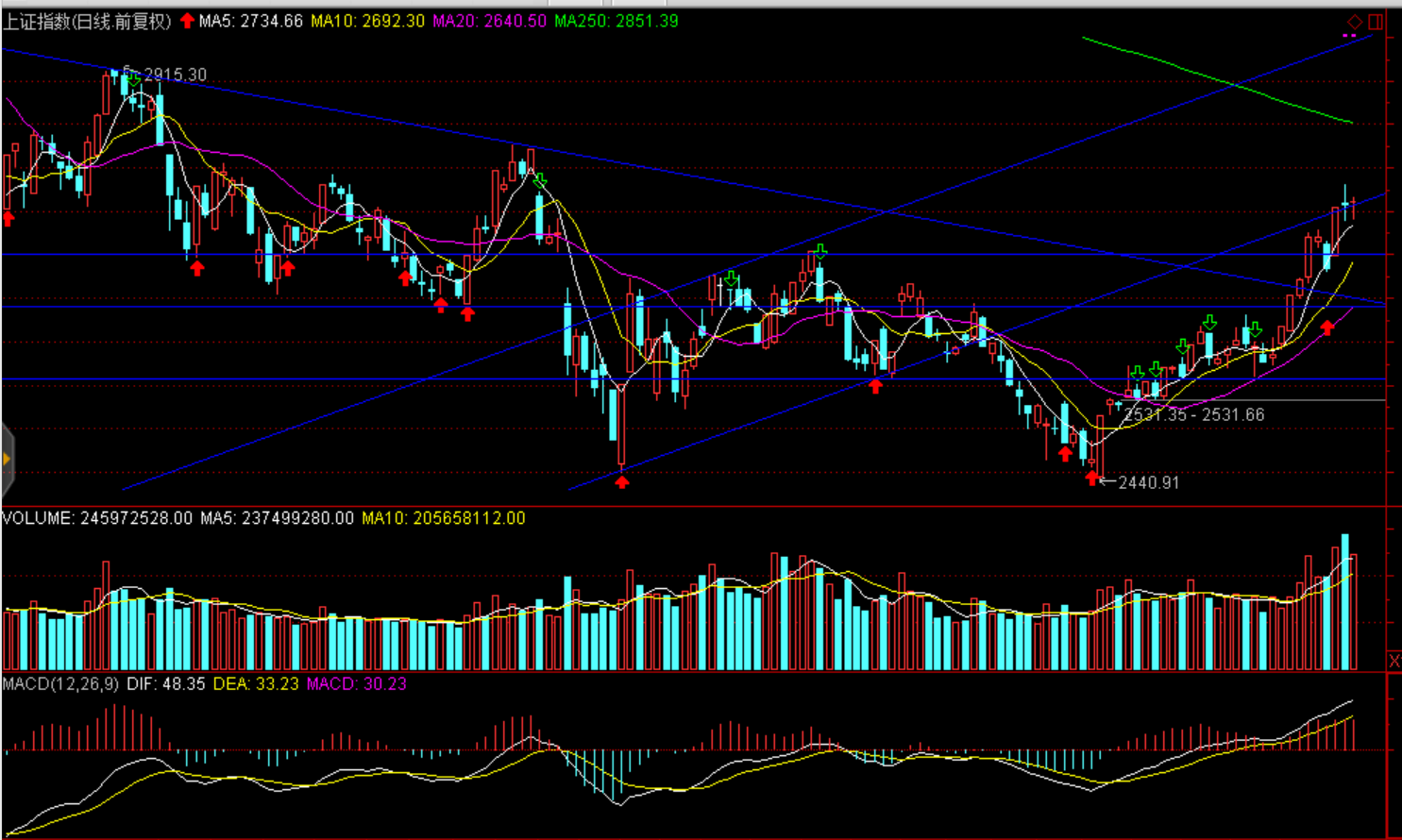 操作建議:短期受阻密集成交壓力,短期上行空間有限,謹(jǐn)慎受阻大幅回撤;滬綜指2770--2790點區(qū)間、創(chuàng)業(yè)板1430點一線、上證50于2600點一線存在壓力,建議加大調(diào)倉力度,棄高就低,逢高減倉大幅炒高品種、適度關(guān)注補(bǔ)漲品種。