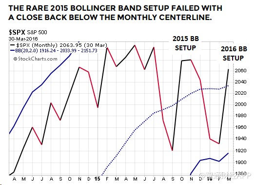 標(biāo)普500指數(shù)從布林通道月線中軌以上跌至中軌以下,然后再反彈收高于中軌以上,并在此期間一直維持在下軌以上,這是標(biāo)準(zhǔn)普爾500指數(shù)相對(duì)少見(jiàn)的走勢(shì),而這正是2018年至2019年發(fā)生的情況。