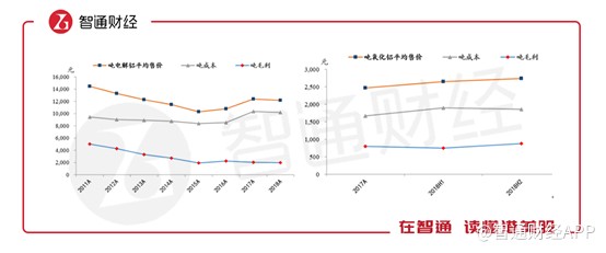 二是因為其產(chǎn)品噸成本居高不下,拿電解鋁來說,2015年之前,隨著售價的明顯下降,噸成本卻保持穩(wěn)定,導(dǎo)致利潤空間被壓縮。新生產(chǎn)品氧化鋁毛利率目前還比較穩(wěn)定,并且高于電解鋁的毛利率。這可能也是氧化鋁業(yè)務(wù)占比迅速擴(kuò)大的原因。
