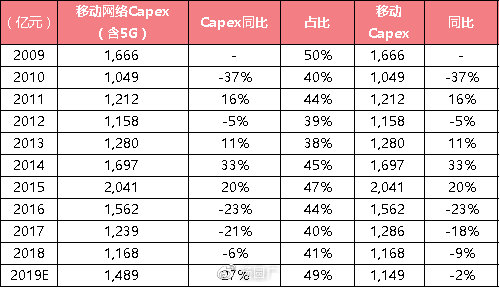 但我們知道,運(yùn)營商的資本開支中,屬于移動(dòng)網(wǎng)絡(luò)建設(shè)的只是其中一部分,但也是最重要部分,僅移動(dòng)網(wǎng)絡(luò)部分是什么一個(gè)情況?