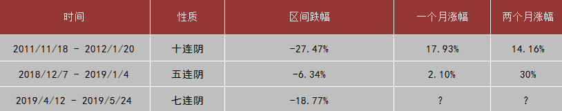 上周市場周一探底后,在稀土、芯片、華為概念等貿(mào)易戰(zhàn)板塊個股帶領(lǐng)下上破2900點(diǎn),最終由于量能不濟(jì),震蕩回落。最終,上證指數(shù)報收2852.99點(diǎn),周跌幅-1.02%;深證綜指報收1496.03點(diǎn),跌-2.43%;創(chuàng)業(yè)板指收1443.75點(diǎn),跌-2.37%。值得一提的是,創(chuàng)業(yè)板指數(shù)周k線七連陰,統(tǒng)計表明,創(chuàng)業(yè)板歷史上,周k線出現(xiàn)五連陰及以上的情況僅有兩次,無一例外的對應(yīng)了階段性底部區(qū)域。對應(yīng)后續(xù)一個月及兩個月的漲幅如下表所示: