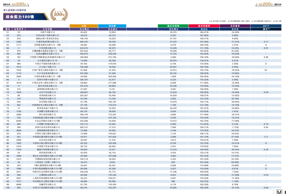 作為一年一度的香港資本市場盛事,“港股100強”盛會已成功舉辦七屆。而今年,數(shù)百位財經(jīng)界、政商界知名人士出席“港股100強”頒獎典禮。