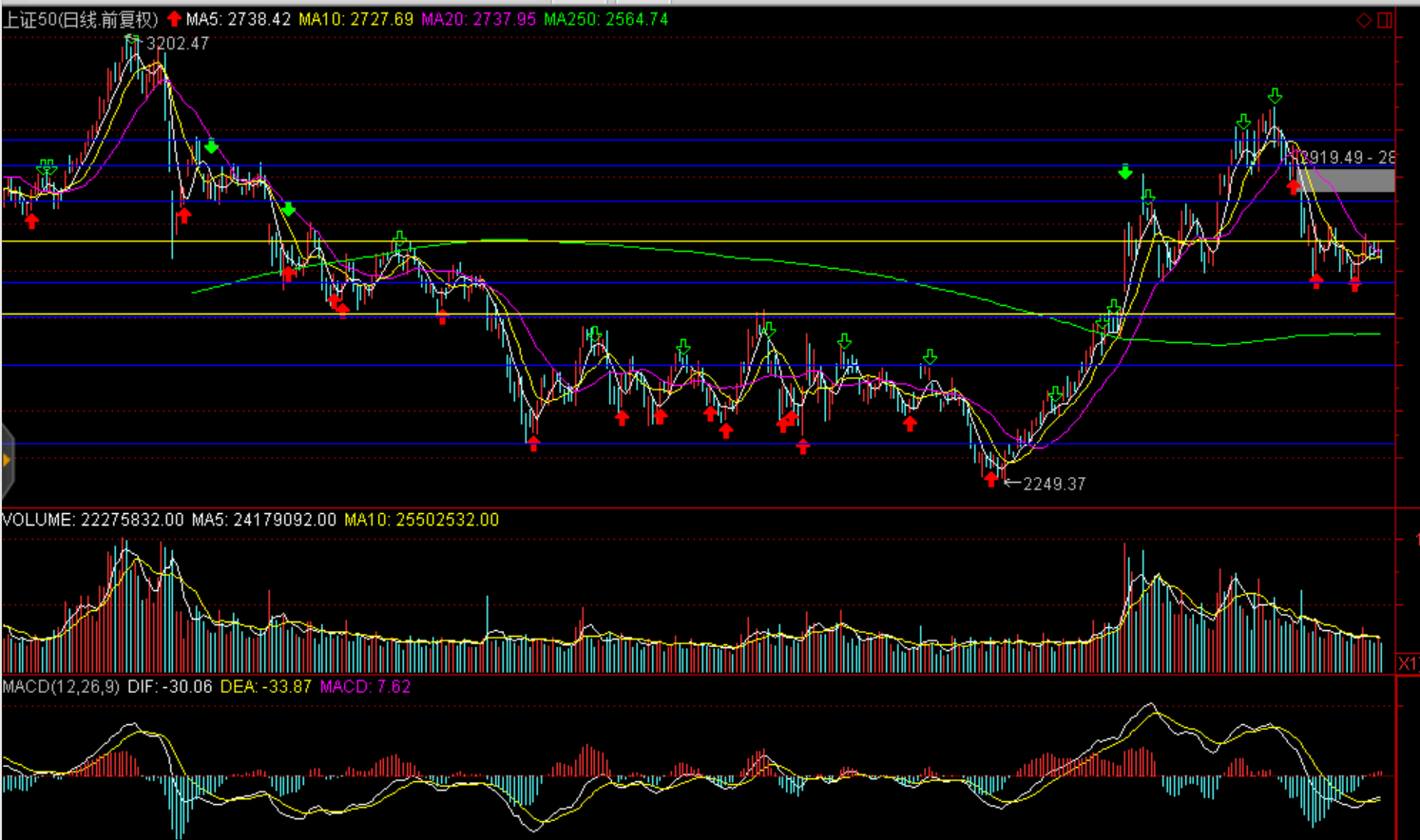 周二兩市股指弱勢震蕩下行,上證綜指收盤跌0.96%報2862.28點;深證成指跌1.23%報8748.27點;創(chuàng)業(yè)板指跌0.87%報1456.27點。兩市成交4224億元,較上日同期縮量567億元。北向資金凈流入10.63億元,已連續(xù)兩日凈流入,銀行股獲得北向資金買入。盤面看5G、通信、長三角經(jīng)濟一體化、冰雪旅游及國產(chǎn)乳業(yè)漲幅居前,板塊與個股普跌,種業(yè)、稀土、環(huán)保、建材、軍工、金屬、酒類領(lǐng)跌。兩市40只個股跌停,漲停僅有36只,短期人氣持續(xù)低迷。