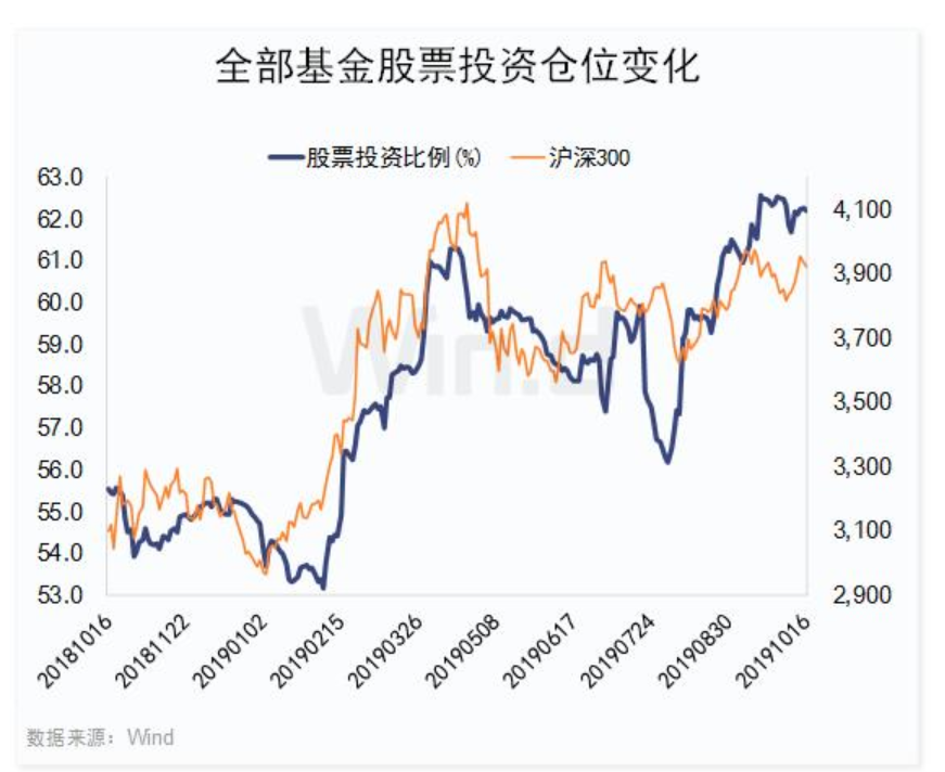 Wind數(shù)據(jù)顯示,截止10月16日,在全部3307只持有股票的基金中,股票投資比例為62.21%,下半年來累計(jì)增倉3.59個百分點(diǎn)。