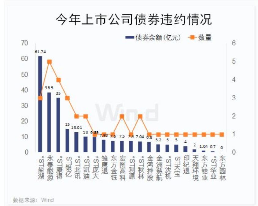 Wind數(shù)據(jù)顯示,目前共有147只債券已經(jīng)發(fā)生了違約,其中少數(shù)債券一年內(nèi)出現(xiàn)多次違約,涉及債券總余額1083.76億元,較去年同期大幅度的上升。