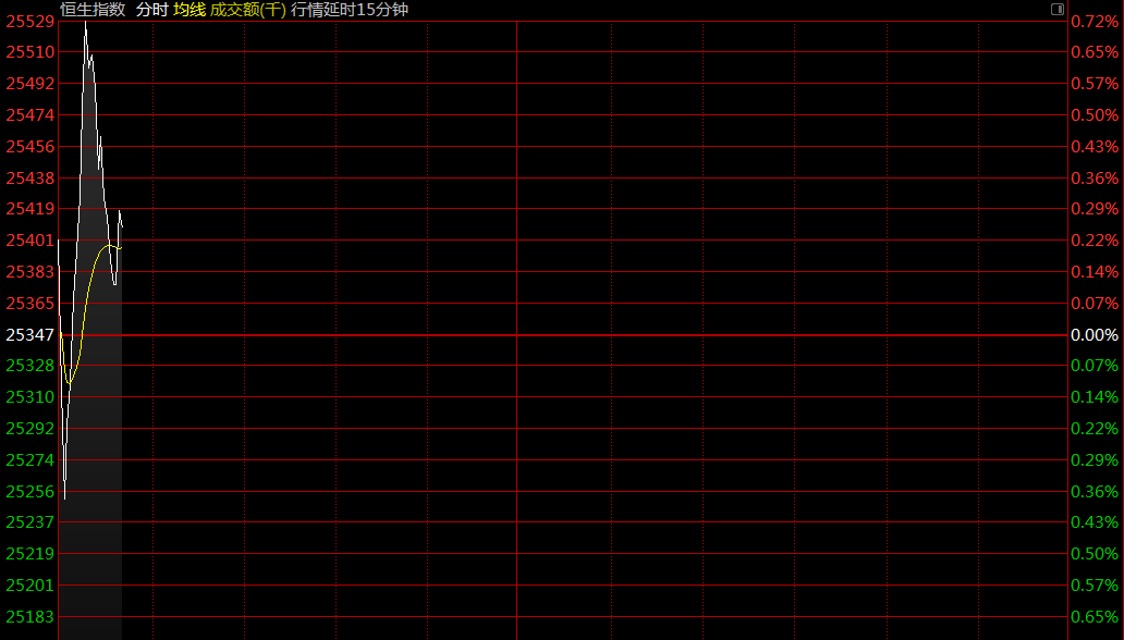 智通財(cái)經(jīng)APP獲悉,昨日恒指收跌800點(diǎn)。恒生指數(shù)開(kāi)盤漲0.22%,報(bào)25401.17點(diǎn)。國(guó)企指數(shù)漲0.01%,報(bào)10235.9點(diǎn)。紅籌指數(shù)跌0.09%,報(bào)4107.59點(diǎn)。大市盤前成交16.67億港元。