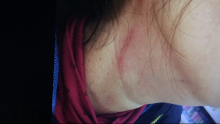 事后,羅小姐的母親張女士很快打電話報(bào)了警。張女士今年52歲,女兒提到母親的傷勢非常心疼,“我母親頭部腫起,脖子上有三處抓痕(有出血),手指也被抓傷,之后幾天右側(cè)腰部和右膝都感覺疼痛?!?/p>