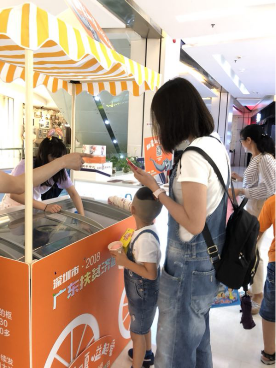 6月23日,“甜蜜初夏 慈善一直在”深圳10大地標(biāo)冰激凌義賣活動(dòng)在在福田星河COCO Park啟動(dòng)。現(xiàn)場,很多逛商場的市民掃碼購買冰淇淋,為扶貧濟(jì)困活動(dòng)捐款。特別讓志愿者感觸的是,不少家長帶著小朋友路過,看到是給貧困人們貢獻(xiàn)愛心,紛紛參與進(jìn)來要買冰激凌。