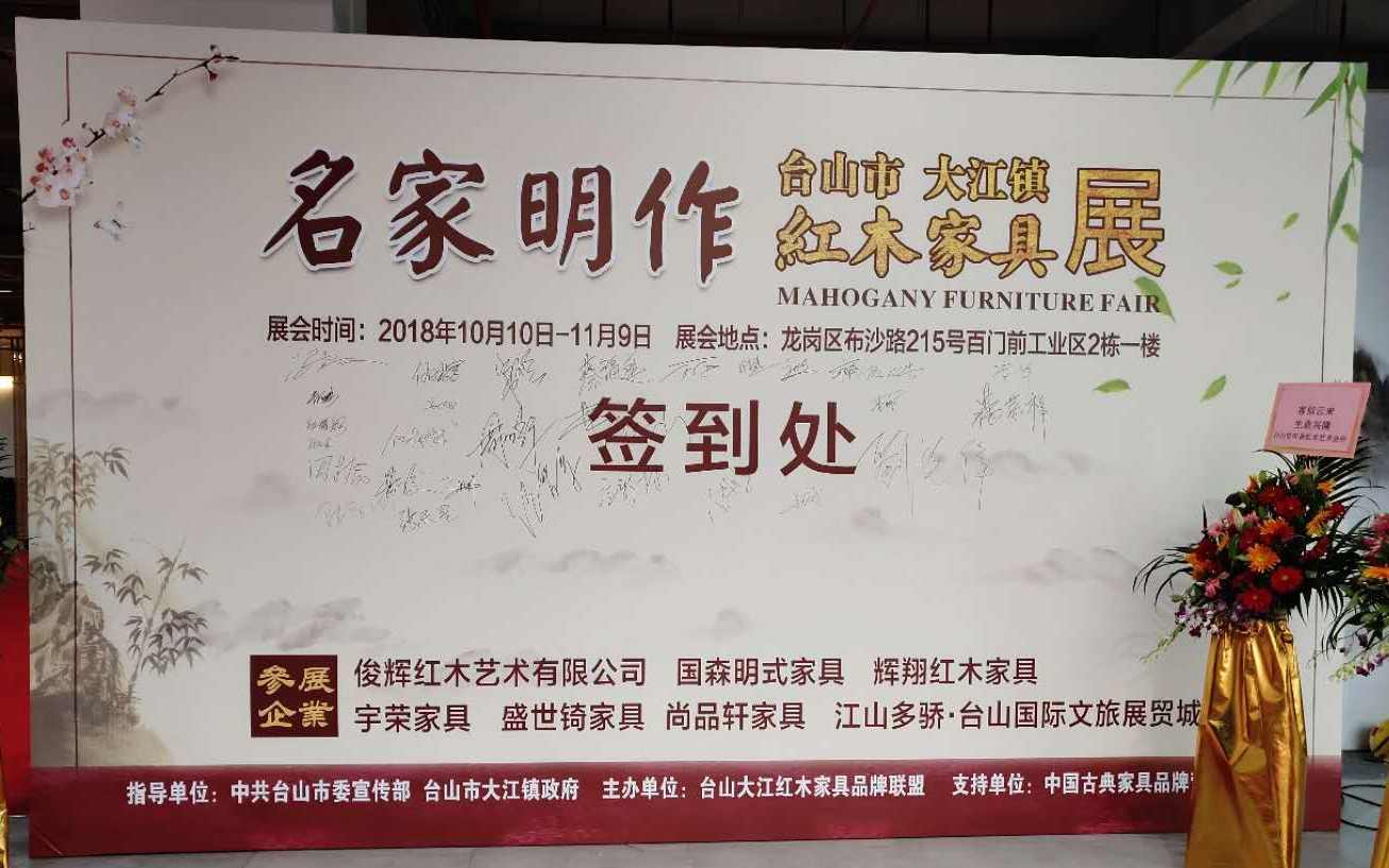 據(jù)了解,此次活動參展企業(yè)有:俊輝紅木藝術(shù)有限公司,國森明式家具,輝翔紅木家具,宇榮家具,盛世锜家具,尚品軒家具,江山多驕·臺山國際文旅展貿(mào)城,活動時(shí)間:2018年10月10日-11月09日。