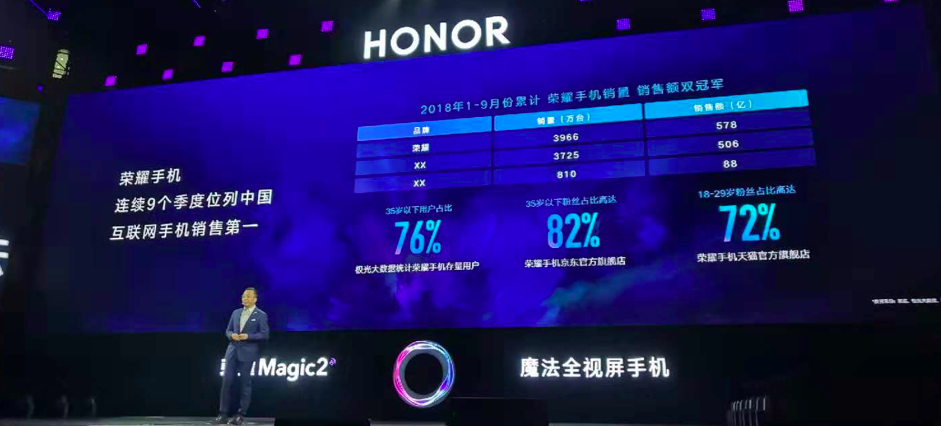 2018年,在全球智能手機市場增長遇冷的大勢下,榮耀繼續(xù)乘風破浪的亮眼表現(xiàn)。在國內(nèi)市場,連續(xù)9個季度位列中國互聯(lián)網(wǎng)手機銷售第一,進一步夯實互聯(lián)網(wǎng)手機第一品牌的地位。據(jù)賽諾數(shù)據(jù)顯示,2018年1-9月,榮耀手機以3966萬臺的銷量、578億元的銷售額,雙雙進入中國手機市場的前五,這也是唯一入圍TOP5的互聯(lián)網(wǎng)手機品牌。同時,榮耀在全球74個國家市場以榮耀模式縱深布局、深度耕耘,強勢進入快速增長通道。