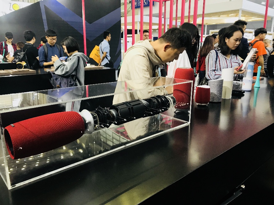 現(xiàn)場展出的小雅AI音箱是國內(nèi)首款全內(nèi)容智能音箱,是洛可可為喜馬拉雅所設(shè)計。設(shè)計過程中的眾創(chuàng)環(huán)節(jié)覆蓋了37.5萬用戶,2.5萬用戶直接參與。洛可可助力喜馬拉雅將內(nèi)容載體從APP“搬到了”產(chǎn)品中,拉開了國內(nèi)音箱創(chuàng)新變革的帷幕。而現(xiàn)場展出的曉雅mini AI音箱則是迭新之作,產(chǎn)品的底部使用穩(wěn)定的三腳支撐設(shè)計,減小與桌面的接觸面積,有效避免共振現(xiàn)象引起的音質(zhì)受損。