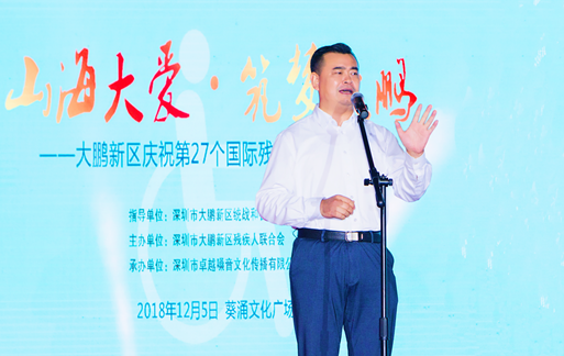 活動的總策劃、著名詩人、深圳市大鵬新區(qū)統(tǒng)戰(zhàn)和社會建設(shè)局常務(wù)副局長、大鵬殘聯(lián)理事長白凌先生說:山海般的大愛來自美麗的深圳大鵬,身殘志堅的人士在此筑夢、追夢直到實現(xiàn)夢想!這是2018年大鵬新區(qū)紀(jì)念“國際殘疾人日”大型活動的目的所在。