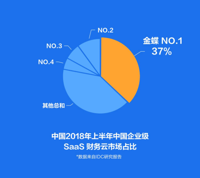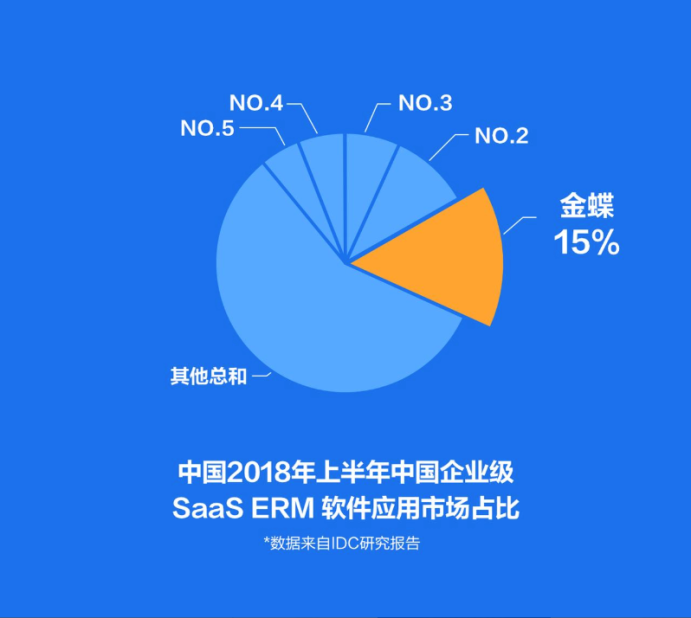 IDC 《中國半年度企業(yè)級(jí) S aaS ERM 應(yīng)用軟件市場(chǎng)跟蹤報(bào)告》,金蝶在2018上半年 SaaS ERM 和 SaaS 財(cái)務(wù) 云 市場(chǎng) 占比繼續(xù)蟬聯(lián)第一。