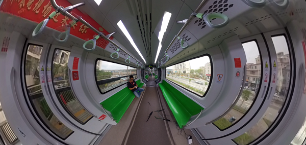 比亞迪云軌可廣泛用于一二線城市的交通接駁線、加密線,三四線城市的交通主干線,以及旅游景區(qū)的觀光線等場(chǎng)景。結(jié)合云軌視頻回傳等重點(diǎn)業(yè)務(wù)場(chǎng)景,云軌車內(nèi)安裝了360球機(jī)攝像頭,通過(guò)5G網(wǎng)絡(luò)傳輸實(shí)時(shí)回傳拍攝到的全景視頻畫面。遠(yuǎn)程操控人員借助VR眼鏡及大屏幕觀看云軌高清視頻畫面,以第一視角控制和監(jiān)測(cè)云軌運(yùn)行狀況,能在第一時(shí)間發(fā)現(xiàn)異常,迅速做出反應(yīng),預(yù)防交通危險(xiǎn)。