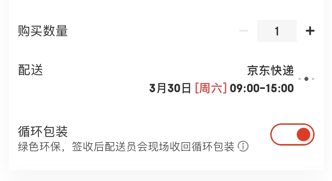當下單頁面出現(xiàn)“循環(huán)包裝”的選擇項時,就說明該商品支持青流箱配送。只要用戶進行選擇,即可參與到環(huán)保行動中,減少一次性包裝使用,以點滴行為助力綠色可持續(xù)發(fā)展事業(yè)!目前,該活動涉及的商品種類數(shù)量達數(shù)萬個,涵蓋美妝、食品、手機、網(wǎng)絡配件、數(shù)碼配件、辦公用品等。