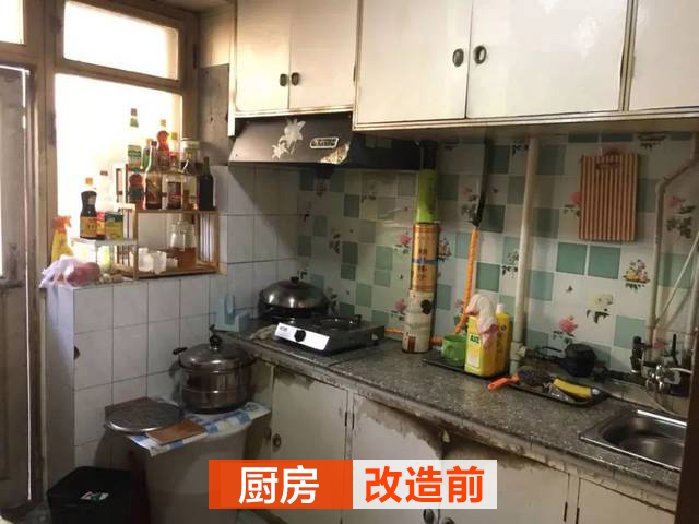 廚房完全可以用不忍直視來形容,油煙已經(jīng)把櫥柜浸黑。操作臺(tái)不僅使用起來不方便,而且與整體搭配格格不入。