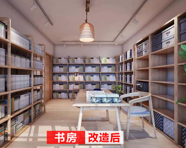改造后的書房,三面書柜,足夠解決儲(chǔ)存空間不足的問題;有一塊專門用于辦公的區(qū)域,閑時(shí)可以坐在懶人椅上看看書,這也是非常寫意的生活。